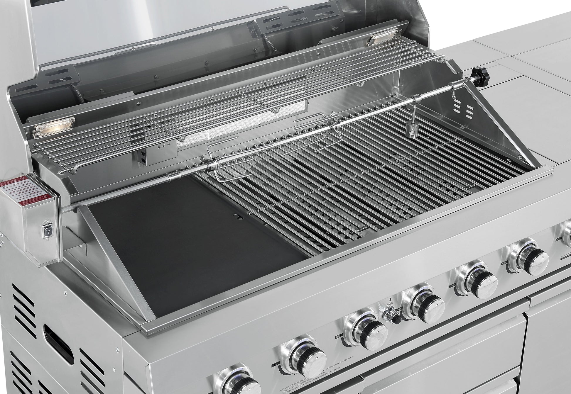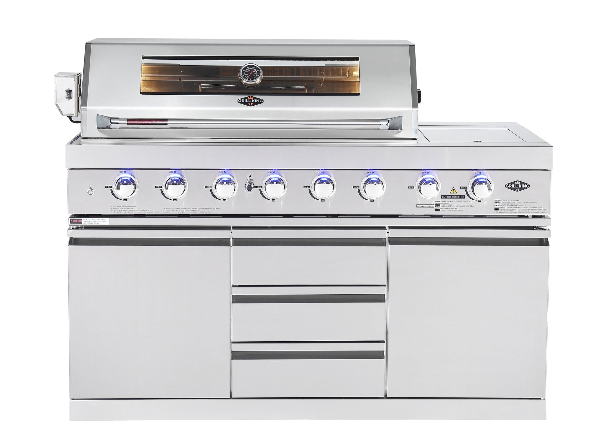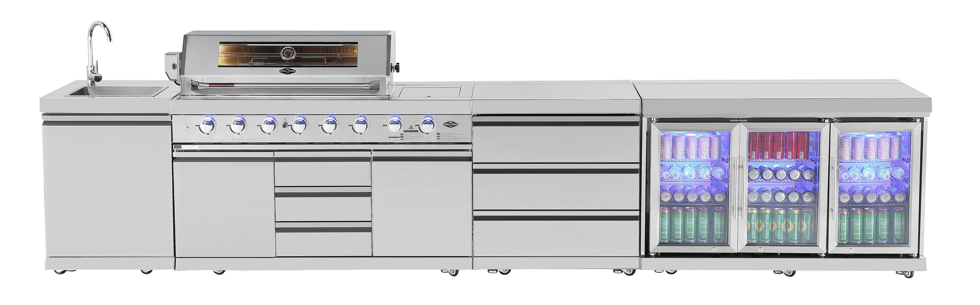 - Ultimate Outdoor Kitchen: Enjoy a complete 6-burner high-grade stainless steel setup with a side burner, sink, and a spacious 63L stainless steel bar fridge - 98% pre-built for quick action.